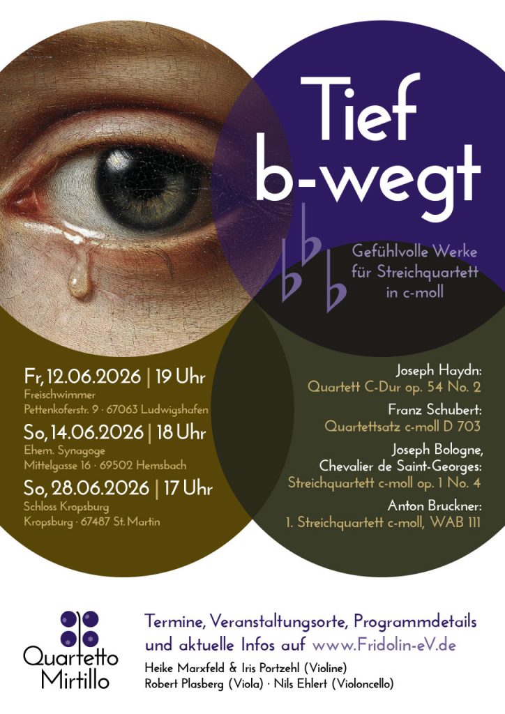 Fridolin e.V. ist ein gemeinnütziger Verein aus Ludwigshafen, der mit hochwertiger Kammermusik Menschen Freude bereiten und die Seele berühren möchte.
